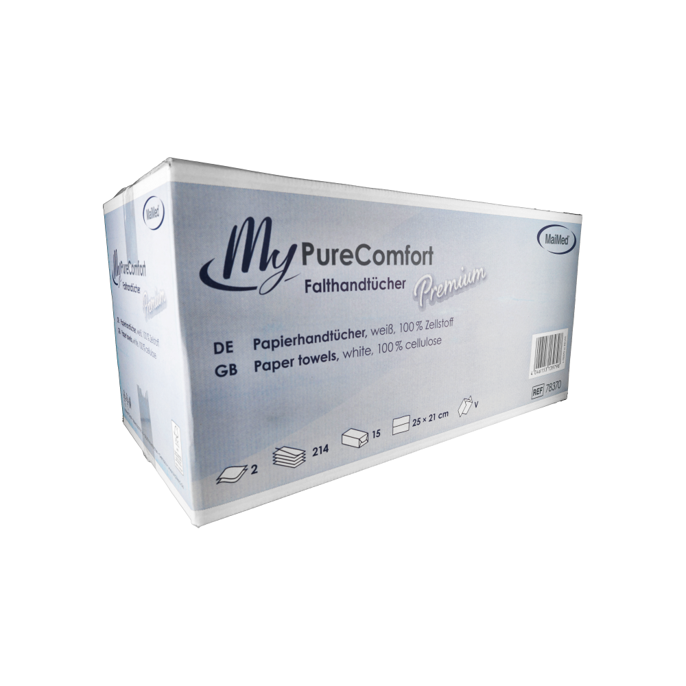 Startseite » WC / Waschraum » Mai Med Hygienepapier Premium » MyPureComfort Falthandtücher Premium 25 x 21cm 2-lagig